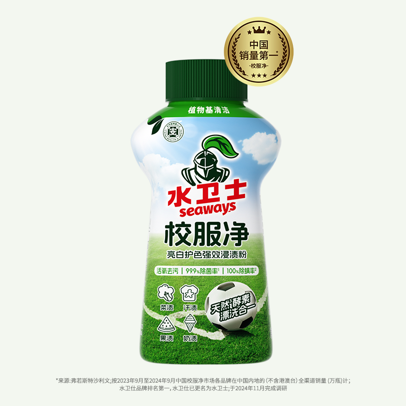 三重去污科技,专为校服、鞋子专研,1瓶=爆炸盐+洗衣液,漂洗合一,99.9%除菌率,100%除螨率,40℃低温起效,一瓶通关多种衣物常见污渍。